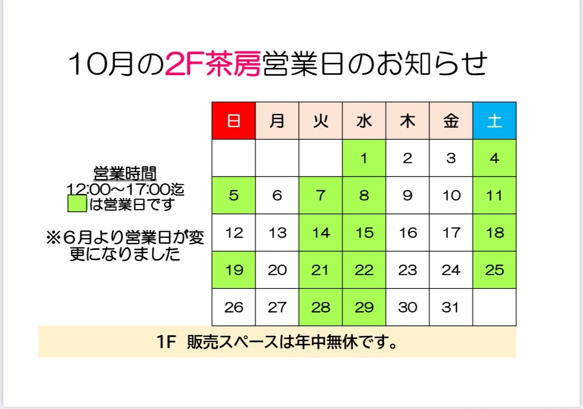 営業時間:12時より17時迄営業日:火・水・土・隔週の日曜日